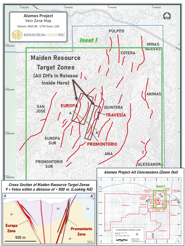 Minaurum Gold Inc. (“Minaurum”) (TSXV:MGG) (OTCQX:MMRGF) is pleased to announce further results of its 2025 resource-definition drill program targeting the Promontorio, Travesia, and Europa vein zones at its Alamos Silver Project (“Alamos”) in Sonora, Mexico. Drilling continued to return numerous high-grade intersections including: (Table 1; Figures 1-4).