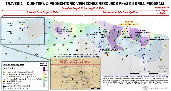 Minaurum Silver Inc. (“Minaurum”) (TSXV: MGG) (OTCQX: MMRGF) is pleased to report results from the first holes of its Phase 2, 50,000-meter resource-expansion drill program at the Alamos Silver Project (“Alamos”) in Sonora, Mexico. The program is targeting the Europa, Promontorio, and Travesia vein zones and has returned multiple high-grade silver intersections (Table 1, Figures 1–4).