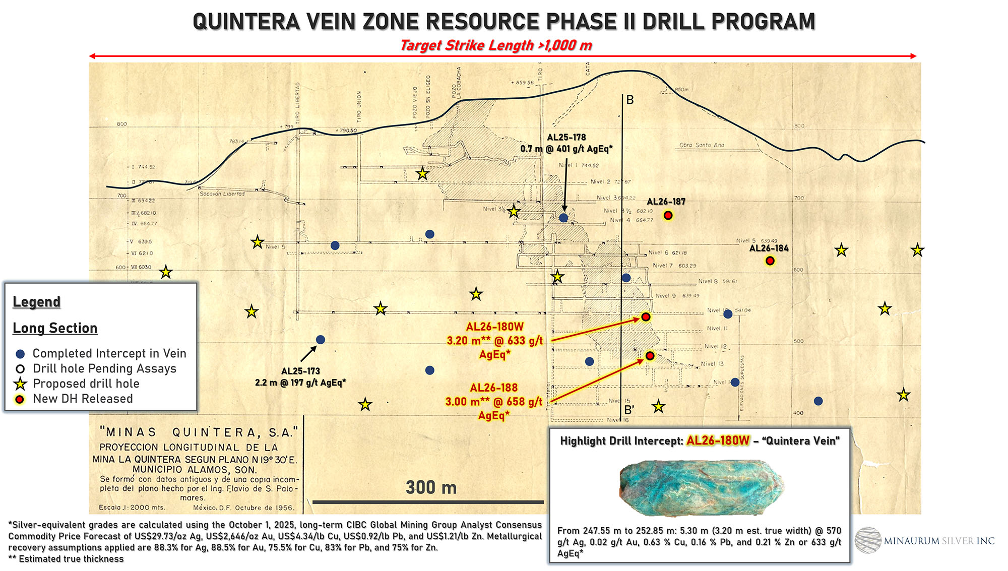 “These drill results at Quintera highlight the strong potential to define and expand high-grade mineralization in vein zones not included in Minaurum’s initial Mineral Resource Estimate. At Europa, ongoing step-out drilling to the south continues to demonstrate excellent continuity, with several high-grade intersections,” stated Darrell Rader, President and CEO of Minaurum Silver. “With consistent high-grade results across multiple vein zones, including the newly tested Quintera zone, Minaurum remains on track with its fully funded 50,000-metre drill program and is well positioned to incorporate these results into an updated mineral resource estimate in the second half of 2026.”